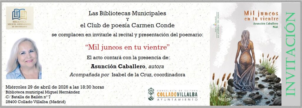 - María Victoria Caro Bernal presenta su libro «TIERRA AMADA. Espíritu de perfección» (Trilingüe: español, árabe e inglés) en el Ateneo de MadridLunes, 12 de septiembre a las 19:30 horas. Calle del Prado, 21 (Madrid)